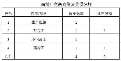 本届技能等级评定大赛面业公司生产体系及面粉公司生产一线员工全员参与。考核项目主要以一线人员劳动效率、技能水平等实操能力为主。评审团为公司高层和生产体系管理团队。