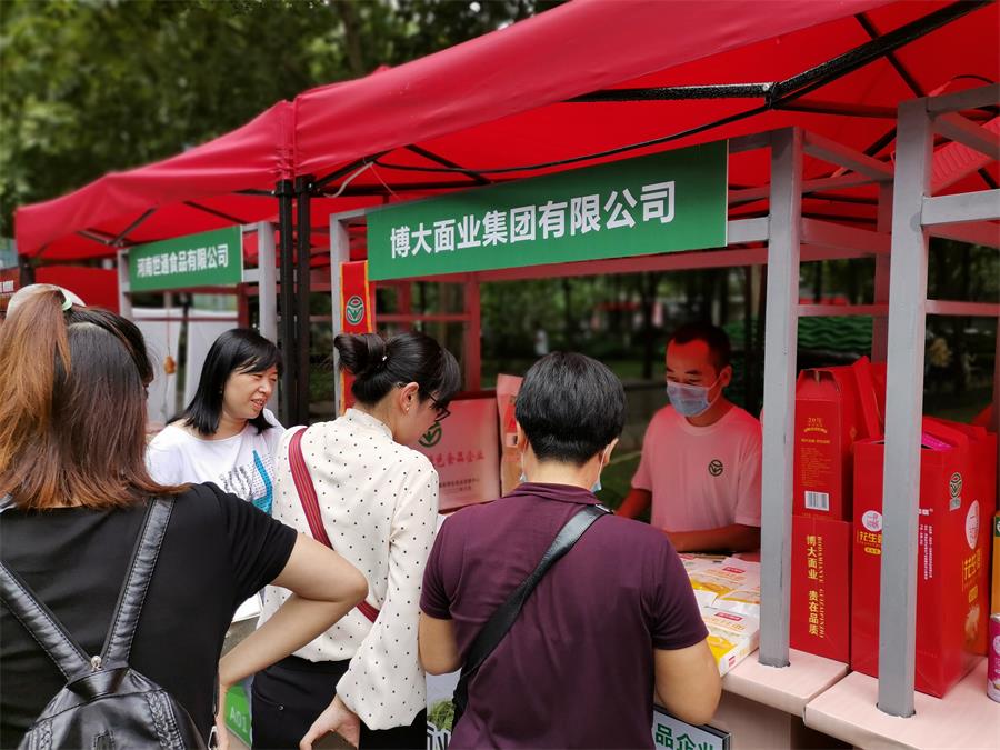 此次活动博大面业展出的绿色食品主要有:面粉系列--麦芯粉、饺子粉、自发小麦粉、多用途麦芯粉;挂面系列--鸡蛋挂面、龙须挂面、绿豆挂面、荞麦挂面、香菇挂面。