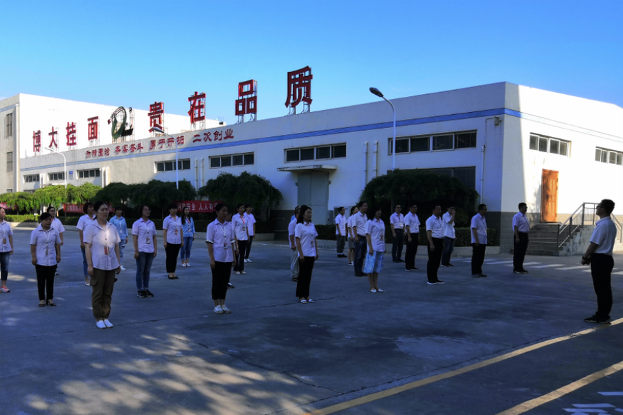 “博大面业,贵在品质,良心工程,用心呵护”……公司经营理念的诵读声响亮地回荡在早操广场上,像一支嘹亮的冲锋号角开启了博大人崭新的一天。