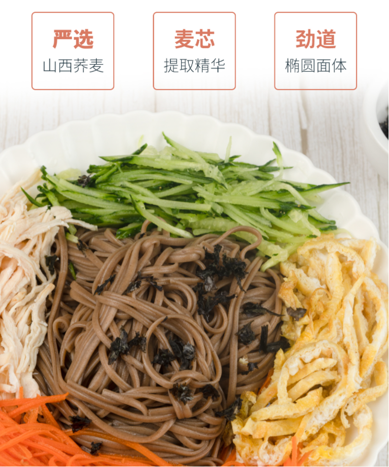 低脂粗粮,高含量荞麦挂面。原料严选山西荞麦碾磨而成,低脂饱腹,柔韧劲道。