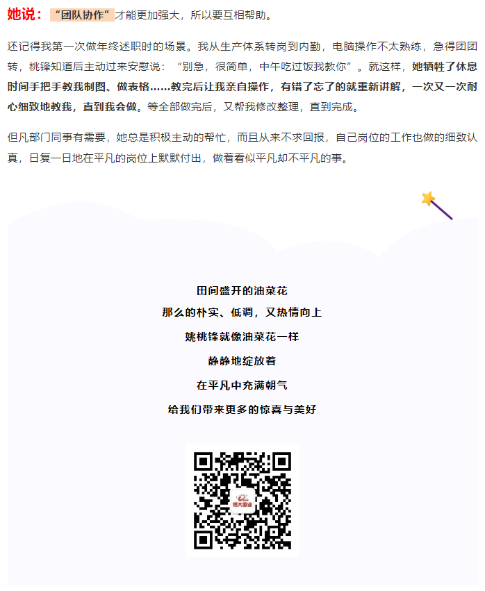 朴实的油菜花——品控部姚桃锋