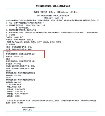 恭喜博大面业成为郑州市财政局招标采购2009(13)项目的中